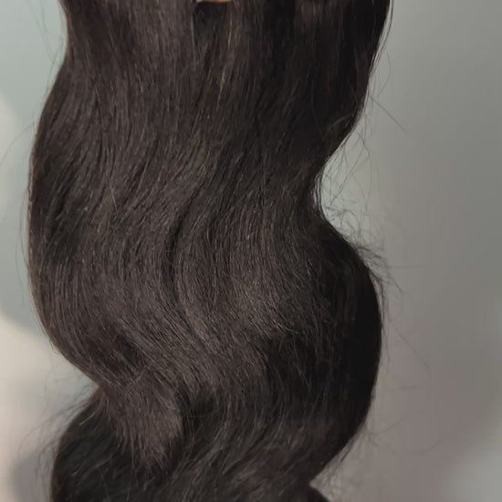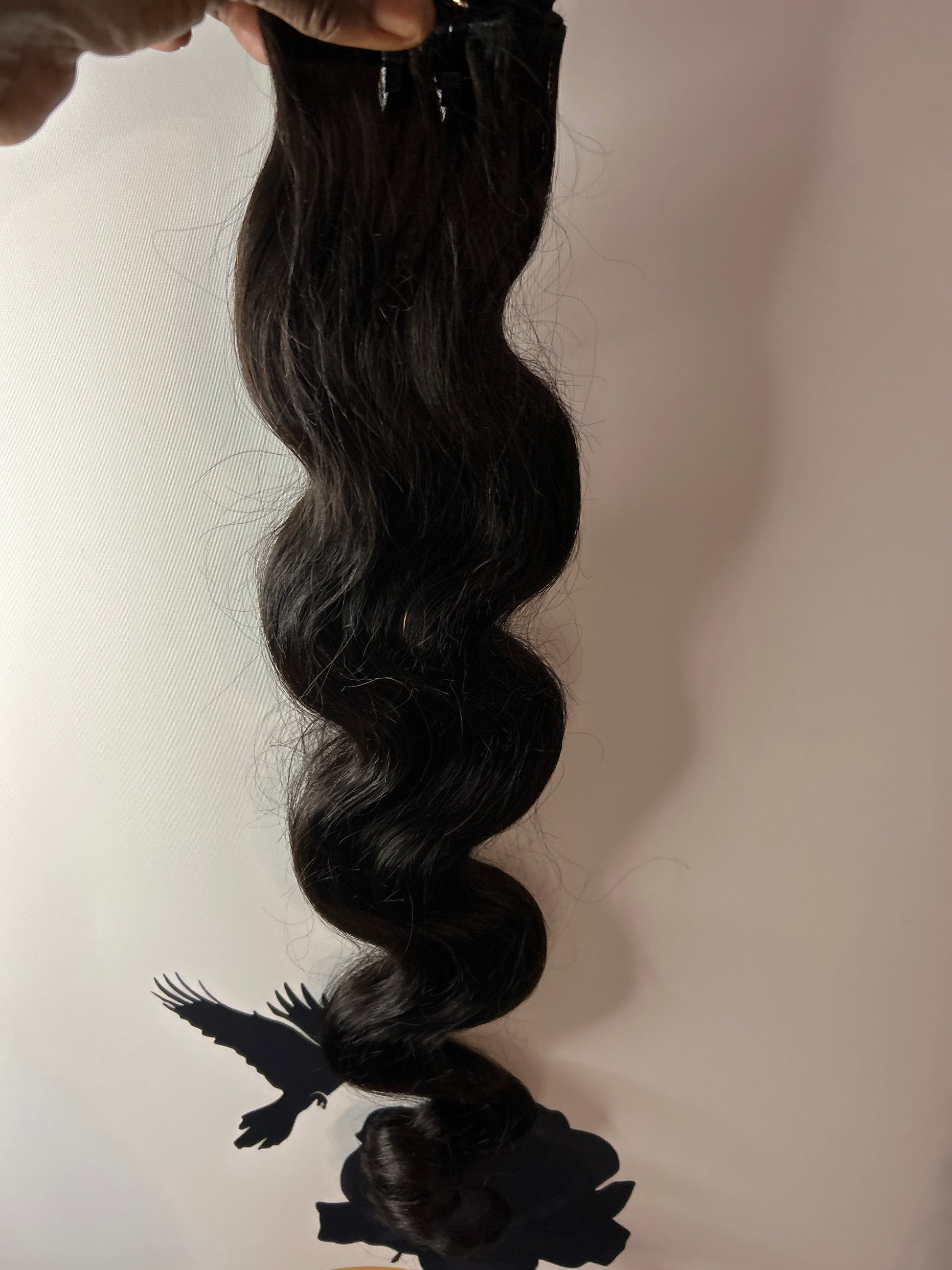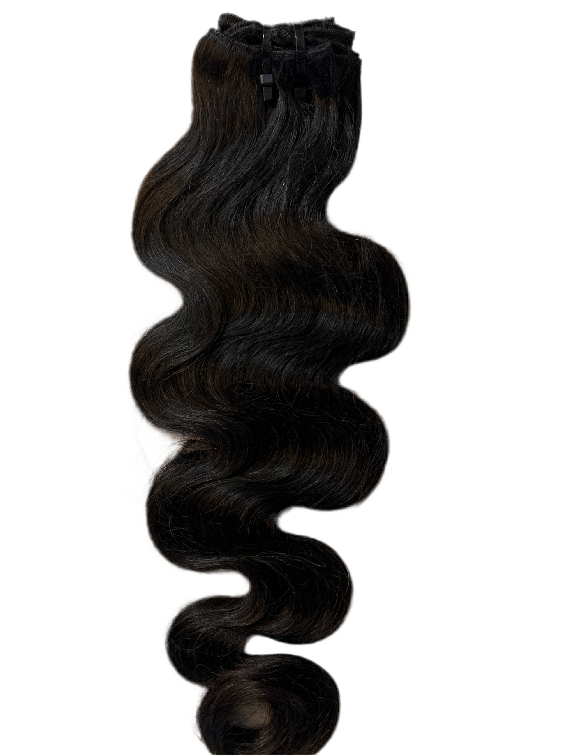 BRBL 26-inch Body Wave Clip-in Hair Extensions offer a natural black finish.